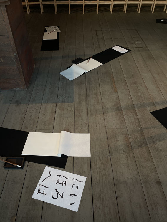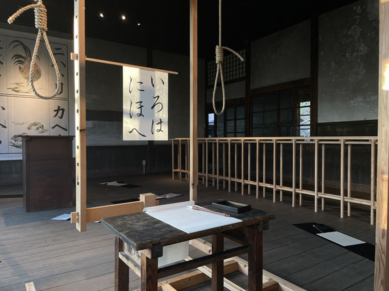 The schoolchildren hooked the rope around both wrists and practiced calligraphy while resisting the spring's repulsive force. They repeated this exercise until everyone was able to write beautiful characters.