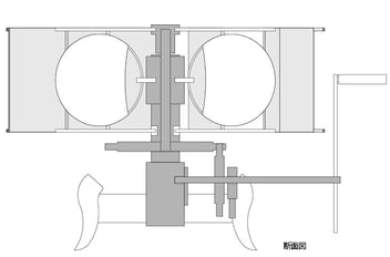 かつての手動扇風機と同様うちわを放射状に並べ、その扇面に連続した絵を描く。視界制限と風向制御を兼ねた導風板を連動させて回すと隙間から扇面に描かれた絵が動いて見える。素朴な動く絵により知的好奇心を呼び起こす効果が期待できる。